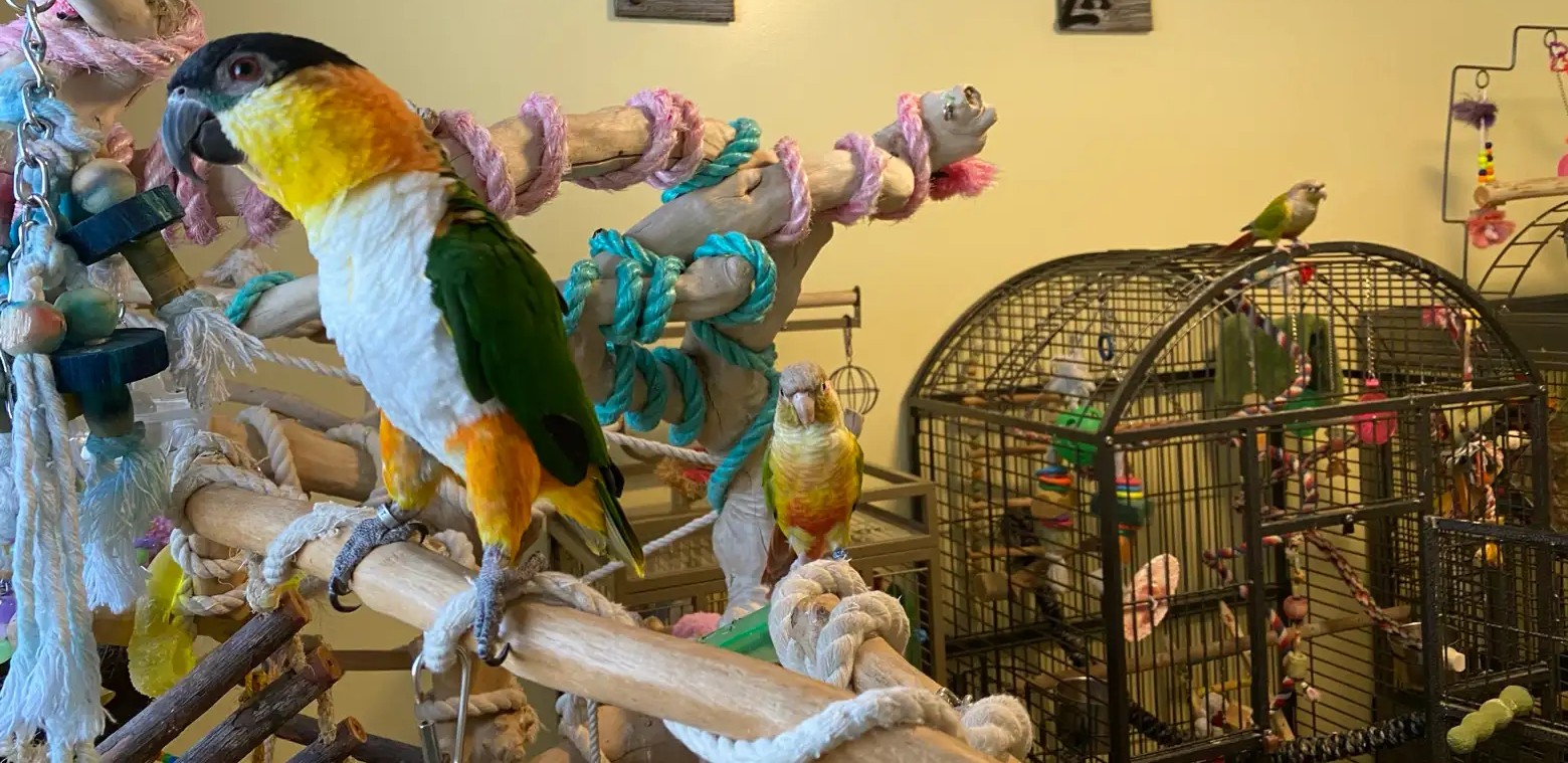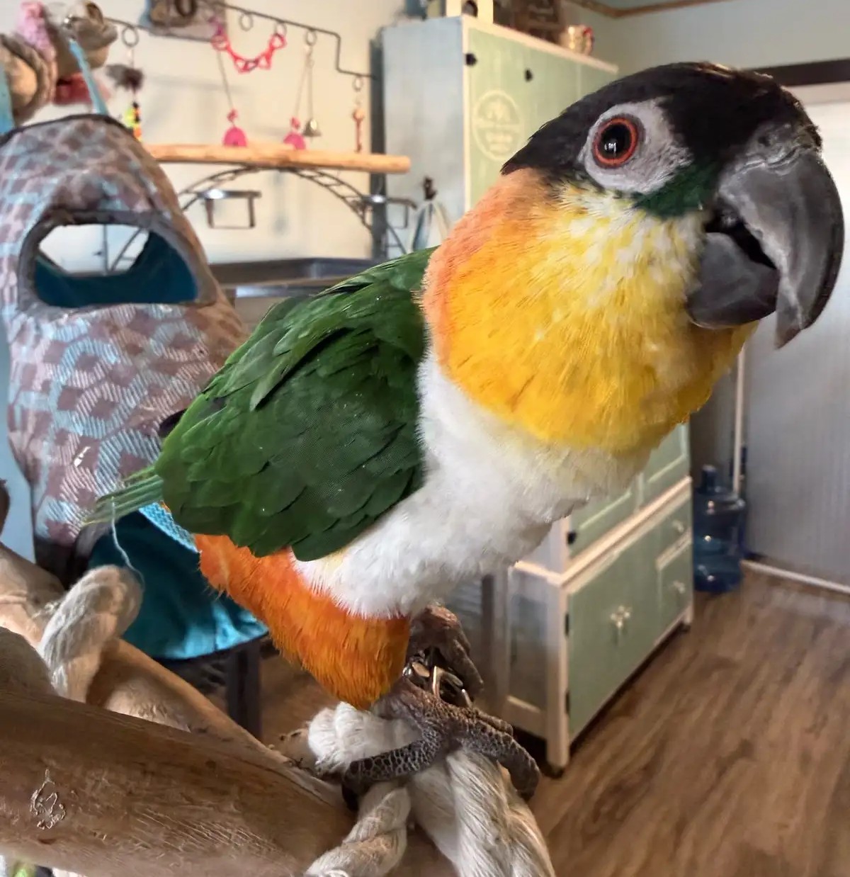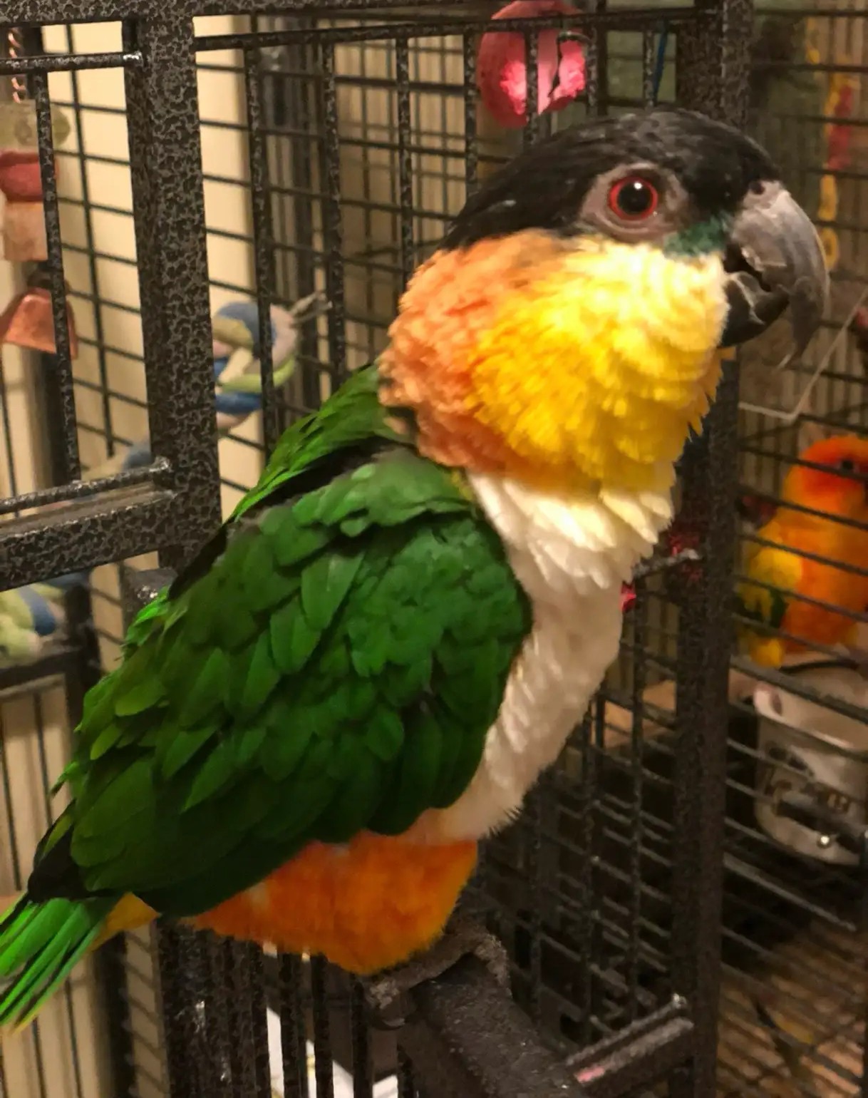 Eine seltene Gelegenheit, eine voll befiederte, intelligente und äußerst unterhaltsame exotische Kaique zu erwerben – Carla ist wirklich einzigartig.
