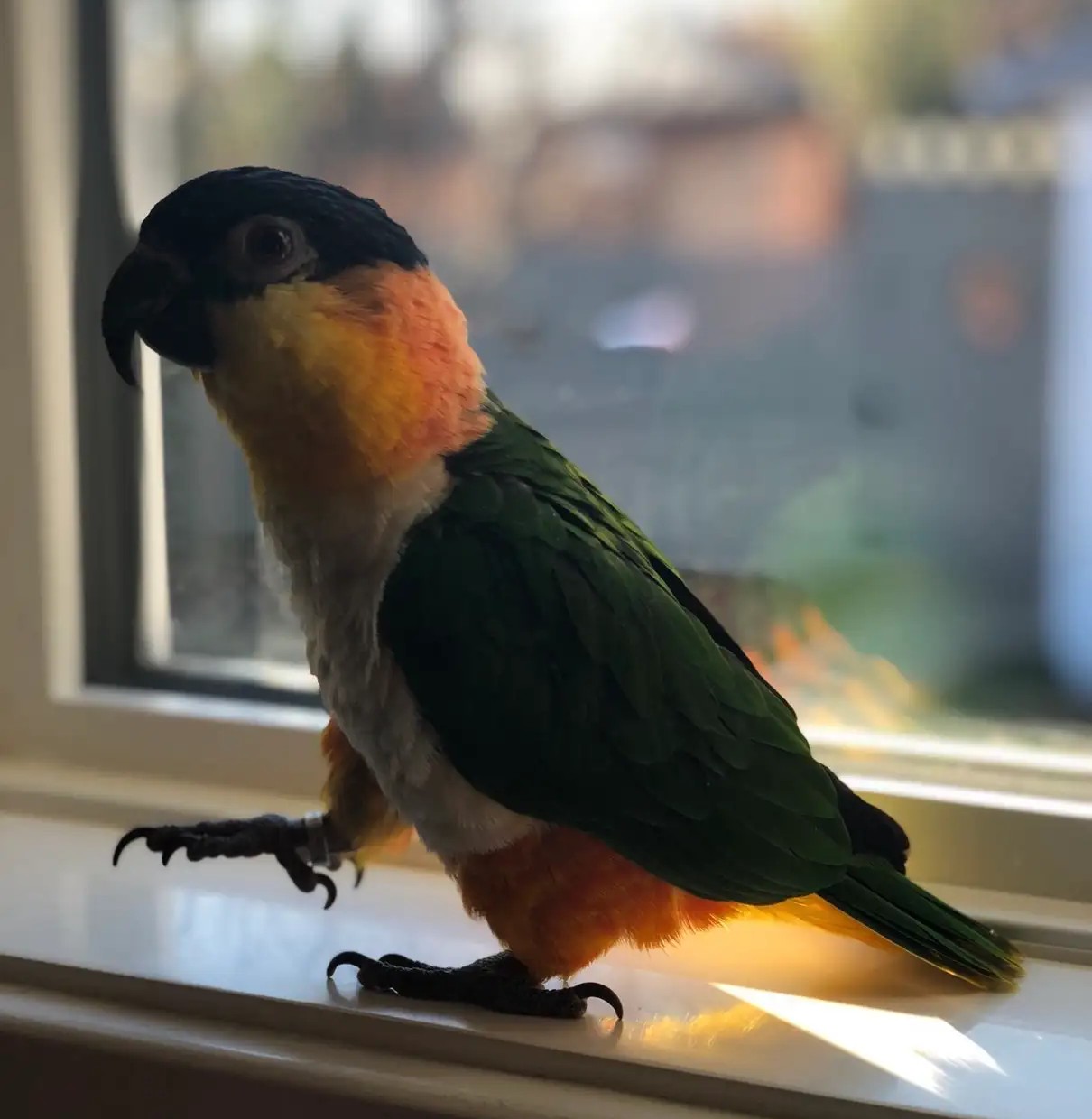Wir freuen uns, Ihnen  Carla , eine wunderschöne Schwarzkopf-Kaique (Pionites melanocephalus) vorzustellen – ein exotischer, äußerst interaktiver Papagei, ideal für Interessenten, die nach black headed caique for sale europe oder caique parrot for sale germany suchen. Aufgezogen mit viel Sorgfalt bei Papageienparadies.com, einem registrierten Züchter, der zu den besten Europas zählt.
