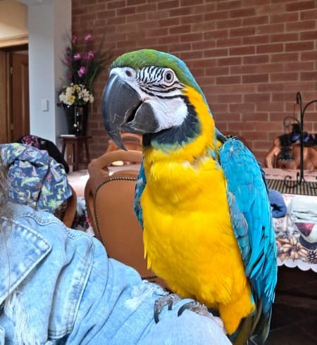Eine hervorragende Gelegenheit, einen gut sozialisierten, handaufgezogenen Ara mit ausgezeichnetem Wesen und großem Potenzial als Begleiter zu erwerben.